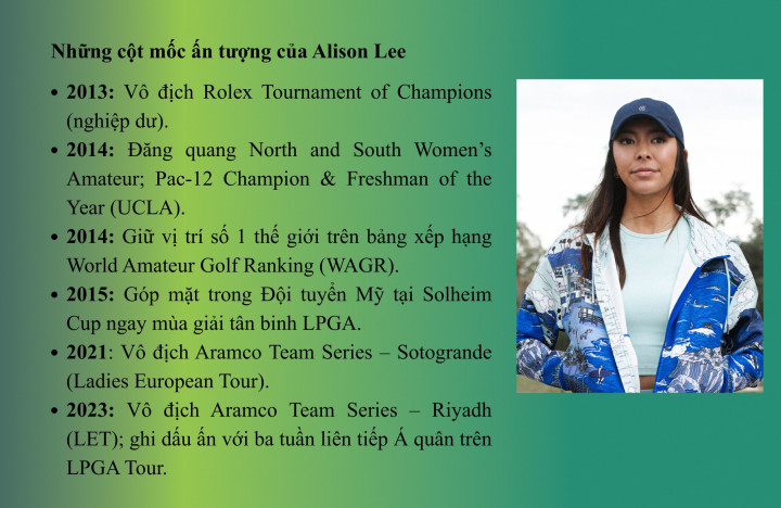 Tuy nhiên, golf chuyên nghiệp chưa bao giờ là con đường thẳng. Trong suốt nhiều mùa giải, Alison Lee không chạy theo sự bùng nổ tức thì. Cô chọn cách tích lũy: từng vòng đấu, từng vị trí Top 10, từng lần đứng trong nhóm cạnh tranh chức vô địch. Chính sự ổn định đó đã tạo nên hình ảnh một golfer đáng tin cậy, điềm tĩnh và ngày càng hoàn thiện.