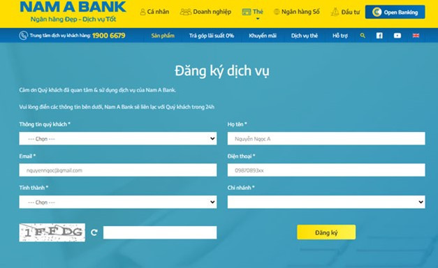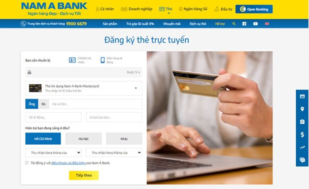 Đăng kí phát hành thẻ trực tuyến trên website Nam A Bank