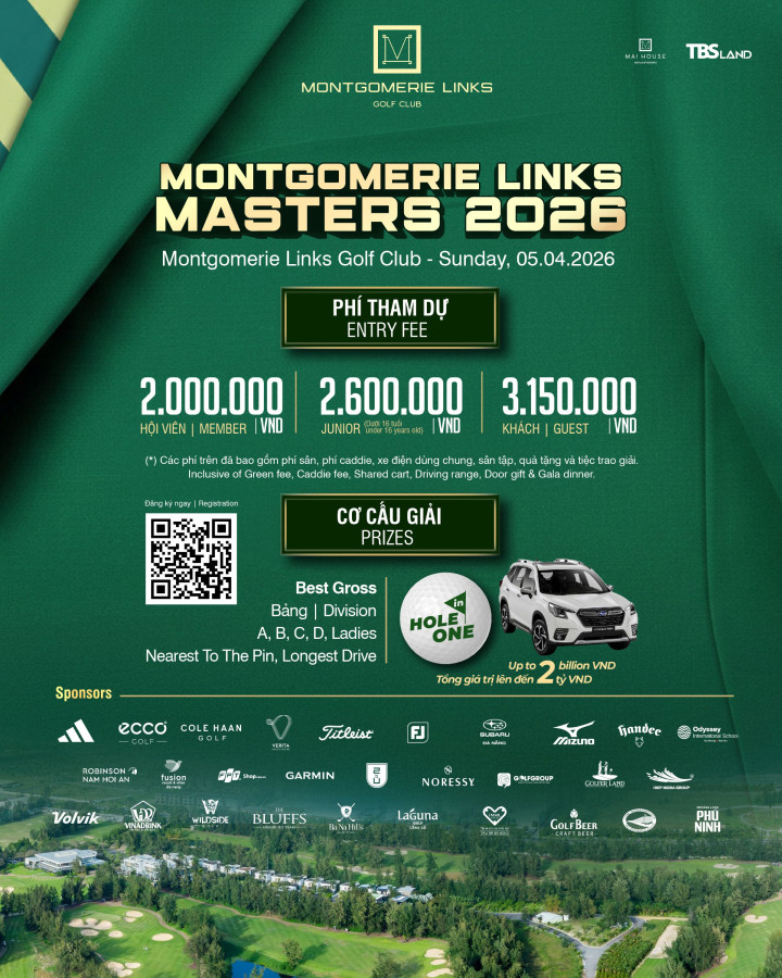 Đồng hành cùng Montgomerie Links Masters 2026 là sự góp mặt của nhiều đối tác và thương hiệu uy tín như TBS Group, ECCO Golf, Cole Haan Golf, Subaru Đà Nẵng, Garmin, FPT Shop, Adidas Golf, Titleist, FootJoy, Mizuno, Wildside Golf, Vinadrink, ROBINSON Nam Hội An, Fusion Resort & Villas Da Nang, Verita Health Hoi An by Wafaifo Hoi An Resort, GolfBeer, Khoáng lành Phú Ninh, Bệnh viện Tâm Trí Đà Nẵng, Odyssey International School, Bà Nà Hills Golf Club, Laguna Golf Lăng Cô, The Bluffs Grand Ho Tram, 2bU, Noressy, Hiệp nghĩa Group, Volvik, Long Thành Golf Club, Handee, Golfer Land, GolfGroup… cùng các đối tác truyền thông, góp phần mang đến một giải đấu được tổ chức chuyên nghiệp và nhiều trải nghiệm giá trị cho golfer tham dự.