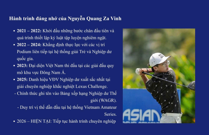 Sự trưởng thành lặng lẽ ấy có thể không tạo ra những tiêu đề giật gân ngay lập tức, nhưng ở một bộ môn mà một cú đánh có thể thay đổi cả cục diện như Golf, chính sự ổn định mới là yếu tố giữ một golfer ở lại lâu nhất trên đỉnh cao. Với Za Vinh, giữ nhịp ở tuổi 15 giữa những kỳ vọng lớn lao là một thử thách, nhưng đó cũng là cách bền vững nhất để đi xa.