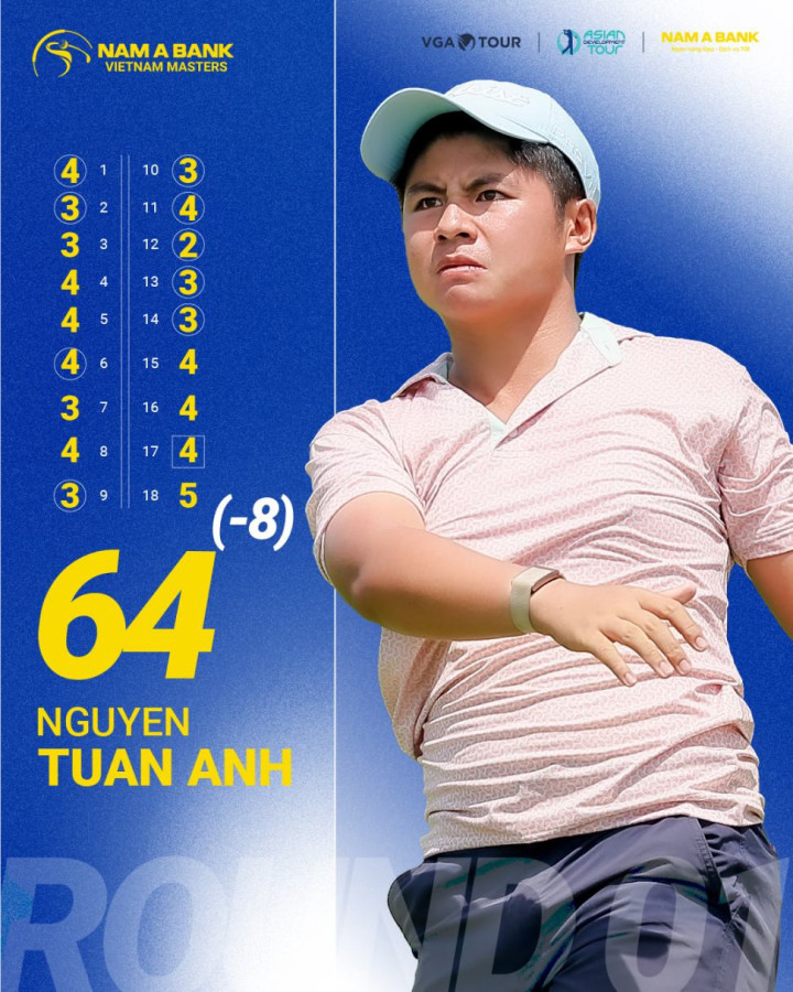 Bên cạnh màn toả sáng của Tuấn Anh, một golfer Việt Nam khác cũng có màn khởi đầu tốt tại Nam A Bank VietNam Masters 2025 là Nguyễn Nhất Long. Golfer sinh năm 2003 ghi được 8 birdie và 2 bogey để đạt thành tích 66 gậy -6, qua đó tạm xếp hạng T3.