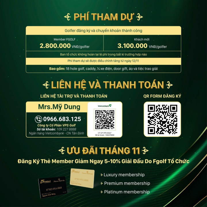 Đặc biệt, golfer đăng ký FGOLF Membership trong tháng 11 sẽ được giảm ngay 5–10% phí tham dự.