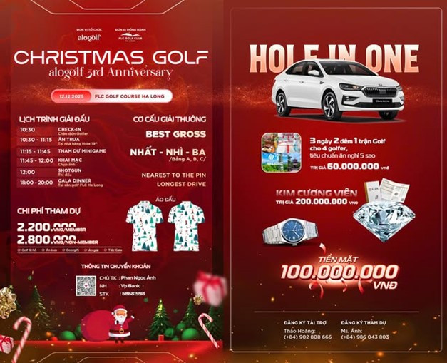 Christmas Golf 2025 dự kiến quy tụ đông đảo các golfer đến từ nhiều câu lạc bộ và doanh nghiệp trên toàn quốc, tạo cơ hội giao lưu, kết nối và mở rộng quan hệ trong cộng đồng golfer. Bên cạnh lịch thi đấu chính, gala dinner tại FLC Hạ Long vào buổi tối sẽ là dịp để các golfer nhìn lại những khoảnh khắc đáng nhớ trong giải đấu, đồng thời cũng là dịp để Alogolf gửi lời tri ân sâu sắc tới cộng đồng golfer đã đồng hành trong suốt những năm vừa qua.