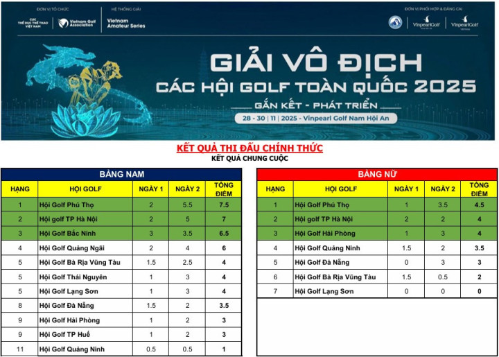 Giải đấu khép lại với chất lượng chuyên môn cao, điểm số giữa các đội sát sao, phản ánh sự đồng đều và nỗ lực của các tuyển thủ. Không khí thi đấu công bằng, tinh thần tập thể và sự gắn kết giữa các hội golf tiếp tục là điểm nhấn của mùa giải năm nay.