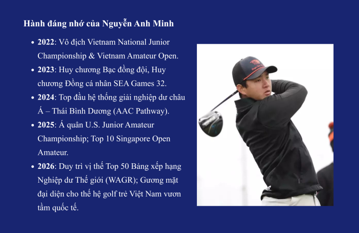 Bước sang năm 2026, Nguyễn Anh Minh không còn là một "hiện tượng" trẻ. Anh đang định vị mình là một trong những golfer nghiệp dư bản lĩnh nhất khu vực đang thi đấu tại Mỹ.
